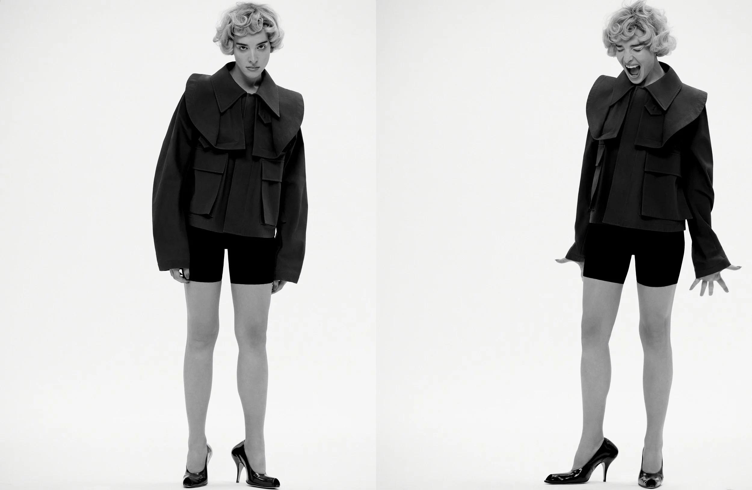 Left Coat and shoes Saint Laurent by Anthony Vaccarello, bra and panties N°21